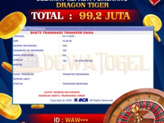 DEWATOGEL JACKPOT LIVE CASINO DI DRAGON TIGER Rp 99.200.000,- LUNAS