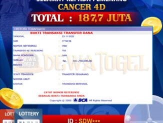 DEWATOGEL JACKPOT TOGEL DI CANCER 4D Rp 187.700.000,- LUNAS #3