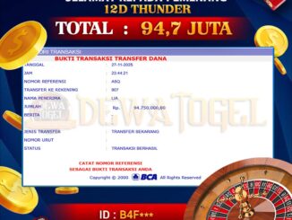 DEWATOGEL JACKPOT LIVE CASINO DI 12D THUNDER Rp 94.700.000,- LUNAS