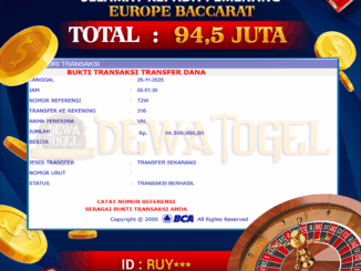 DEWATOGEL JACKPOT LIVE CASINO DI EUROPE BACCARAT Rp 94.500.000,- LUNAS