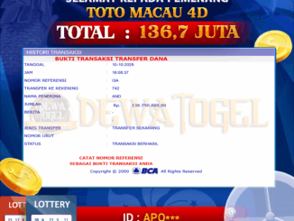 DEWATOGEL JACKPOT TOGEL DI TOTO MACAU 4D Rp 136.750.000,- LUNAS