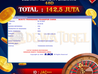 DEWATOGEL JACKPOT LIVE CASINO DI 48D Rp 142.500.000,- LUNAS