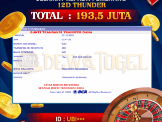 DEWATOGEL JACKPOT LIVE CASINO DI 12D THUNDER Rp 193.500.000,- LUNAS